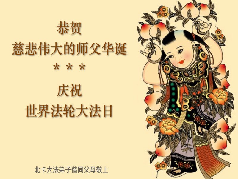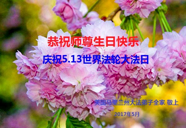 夏威夷全体大法弟子感恩师父给我们修炼、救人的万古机缘!我们以前没有做好的地方,我们非常愧疚,今后我们会做好。 美国西雅图一家三口大法弟子并代表大陆亲人大法弟子及亲朋好友恭祝师尊生日快乐!庆贺世界法轮大法日!