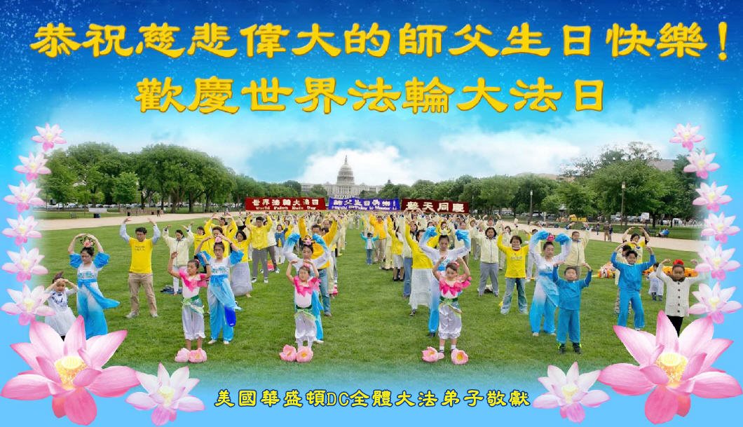 美国华盛顿DC全体大法弟子恭祝慈悲伟大的师父生日快乐!欢庆世界法轮大法日!