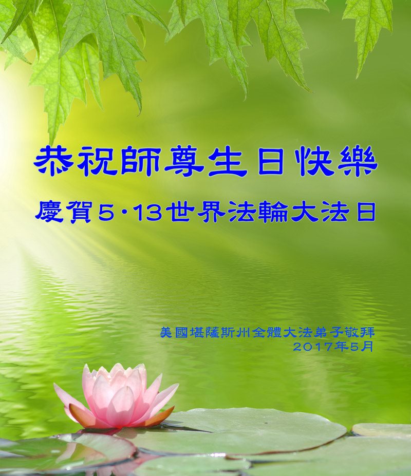 美国堪萨斯州全体大法弟子恭祝师尊生日快乐!庆贺世界法轮大法日!