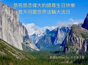 美国加州圣荷西大法弟子恭祝慈悲伟大的师尊生日快乐!