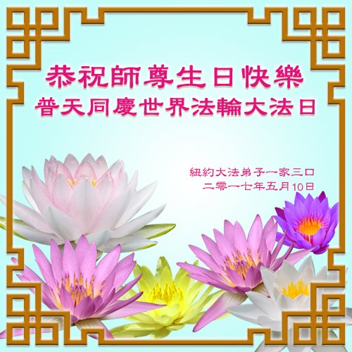 纽约大法弟子一家恭祝慈悲伟大的师尊生日快乐!