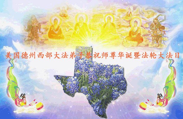 美国德州西部大法弟子恭祝师尊华诞暨世界法轮大法日!