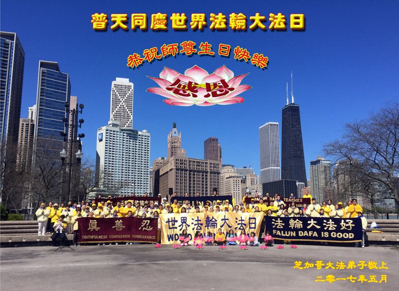【明慧网二零一七年五月十三日】 芝加哥大法弟子恭祝慈悲伟大的师尊生日快乐!普天同庆世界法轮大法日暨大法洪传世界二十五周年!