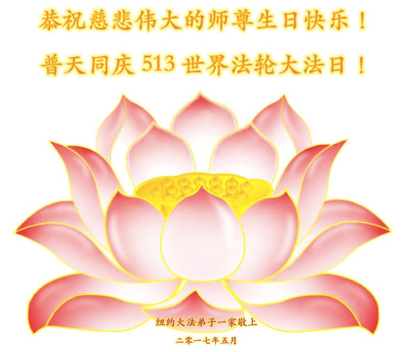 转眼又到5.13 弟子叩拜师尊,祝师尊生日快乐! 弟子入道得法20年,慈悲师尊精心呵护。弟子感恩之情无以言表。 弟子在今后的日子里,好好修,做好三件事,圆满随师还! 美国纽约大法弟子恭祝师父华诞!