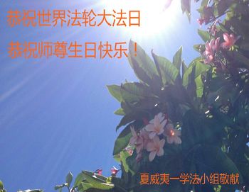 普天同庆世界法轮大法日!感恩师尊的慈悲呵护与救度! 夏威夷一大法弟子恭祝师尊生日快乐!