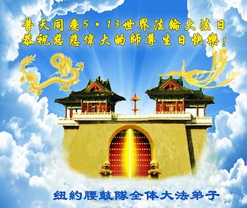 纽约腰鼓队全体大法弟子 恭贺 师父生日及世界法轮大法日!