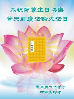 慈悲伟大的师尊您好!弟子恭祝慈悲伟大的师尊生日快乐!在5·13这个伟大的日子来临之际,弟子无法用语言来表达对师尊的感恩,只能抓紧时间修好自己,把所有遇到的世人当亲人,把法轮大法的美好带给他们,使众生早日明白大法真相得救度! 法国巴黎购物中心讲真相劝三:退.的全体大法弟子恭祝慈悲伟大的师尊生日快乐!