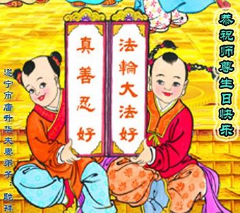 【明慧网二零一七年五月十三日】满江红──山东泰安市全体大法弟子恭贺师尊生日快乐!恭祝师尊华诞暨法轮大法洪传二十五周年! 满江红 苍穹铭记,九二年、五月十三。 创世主、洪慈展现,大法开传。 众生期盼亿万年,浩荡佛恩到眼前。 法光照、师引返家园,热泪潸。 旧势恶,红魔险,蟾蜍狂,妖风卷。 幸师尊、力挽惊天狂澜。 世人清醒有未来,群魔造孽下无间。 齐叩首,庆师尊华诞,天地欢。 山东泰安市全体大法弟子敬上 诗歌:中华之福──四川遂宁市夫妻大法弟子恭祝师尊生日快乐! 在世界法轮大法日暨师尊六十六岁华诞即将到来之际,我们代表全家人向慈悲、伟大的师尊问好!恭祝师尊生日快乐!师尊正法辛苦了! 下面是弟子敬献给师尊的诗: 中华之福 滚滚红尘 轮回转生 人身难得 正法难遇 下世入迷 记忆封存 吃苦受累 仰天叹息 日出而作 日落而息 循环往复 不知何因 千年苦挨 万年等待 生生世世 望眼欲穿 一九五一 圣王降临 吉祥如意 手持转轮 大江南北 传遍福音 长城内外 齐颂师恩 天宇重组 尘埃荡尽 星河灿烂 五彩缤纷 师尊正法 挥手即成 仙娥散花 回归天庭 法正人间 败物无存 万物更新 宙宇清明 华夏儿女 喜庆新生 复兴中华 盛世开启 大法弟子 心静如水 勿恋红尘 白日飞升 我们得法修炼二十余年了,每天都沐浴在师尊的法光里,平稳的做着师尊交给我们的三件事,家里还成立了学法小组,在师尊的加持与保护下,我们的学法小组一直坚持到现在,没有受到过任何干扰。女儿、女婿和孙子都支持我们修大法,并且在诉江表上签名按了手印。他(她)们的工作都很顺利,生意兴隆,孙儿聪明好学,这一切都是沾大法的光,托师尊的福,我们全家都真诚感谢师尊! 在师尊用巨大承受为我们延续来的宝贵时间里,我们决心做好师尊安排的三件事,坚定实修,遇到任何事都修自己,严守心性,宽容他人,珍惜师尊赐予我们修炼正法的圣缘,勇猛精進,跟师尊回家。 遂宁市夫妻弟子:跪拜师尊 2017年4月22 日 诗歌:谢师恩──安徽一大法弟子恭祝慈悲伟大的师尊生日快乐! 万物欣欣沐甘霖,亿众深深谢佛恩。 师救苍穹造新宇,法度众生回天门。 山山水水留圣迹,家家户户送福音。 佛恩浩荡今生遇,天地人神仰师尊。 诗歌:坚忍──河北省唐山丰润区全体大法弟子叩谢师尊慈悲苦度!恭祝师尊生日快乐! 大法洪传东土中,慈悲普度道无形。 邪恶迫害十八载,亿万弟子毅如松。 风雨之中显青翠,冰雪过后更葱茏 参天遮挡尘世雨,葱郁挺拔救众生。 红潮恶浪摧不垮,屹立东方阻邪风。