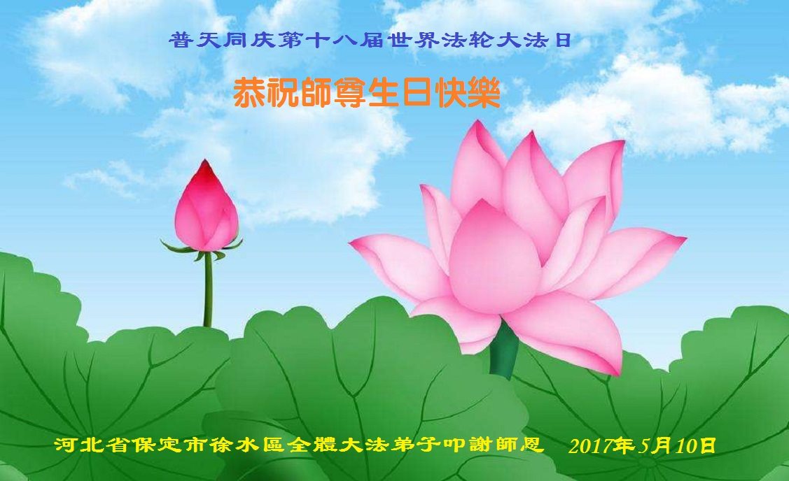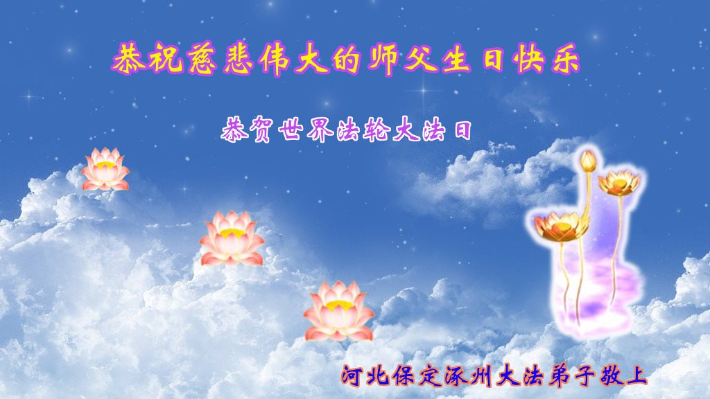 河北省保定教育系统全体大法弟子恭贺世界法轮大法日暨恭祝慈悲伟大的师父生日快乐!
