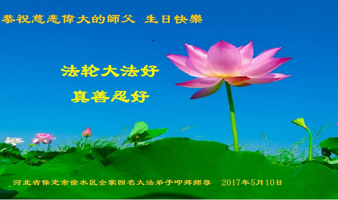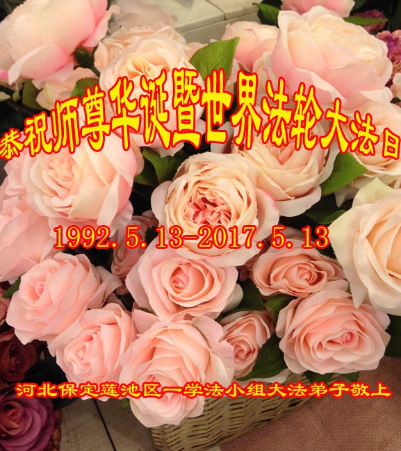 【明慧网二零一七年五月十三日】 河北保定莲池区大法弟子恭贺法轮大法日!