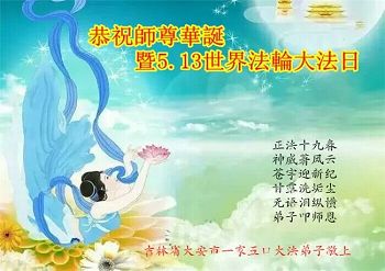 【明慧网二零一七年五月十三日】 吉林省辽源市大法弟子恭贺法轮大法日!