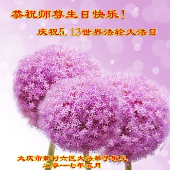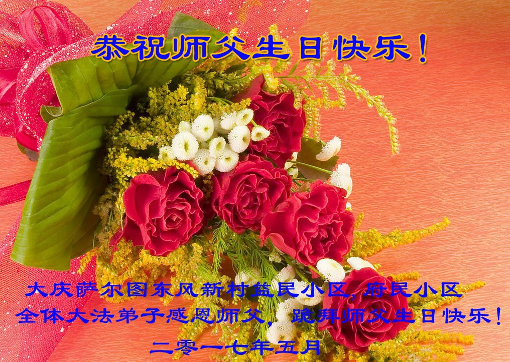 【明慧网二零一七年五月十三日】 黑龙江省大庆新村益民小区、府民小区全体大法弟子恭贺法轮大法日!