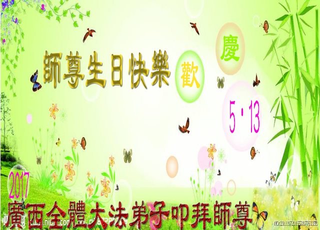 【明慧网二零一七年五月十三日】 广西壮族自治区梧州市苍梧县全体大法弟子恭祝慈悲伟大的师尊生日快乐!
