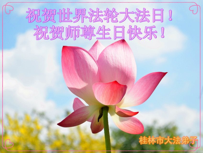 广西桂林一大法弟子恭祝师尊生日快乐!热烈祝贺第十八届世界法轮大法日暨法轮大法洪传二十五周年!