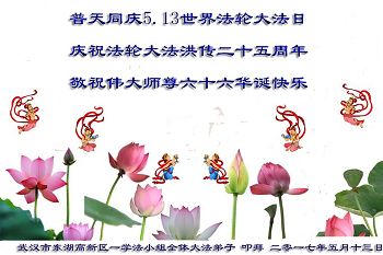 湖北省武汉市一大法弟子恭贺法轮大法日!
