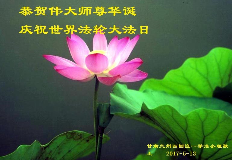 在最后有限的时间里,弟子一定努力做好三件事,精進,精進,再精進。 弟子合十敬贺! 二零一七年五月十日 甘肃兰州大法弟子恭祝师尊生日快乐!恭贺2017年世界法轮大法日!