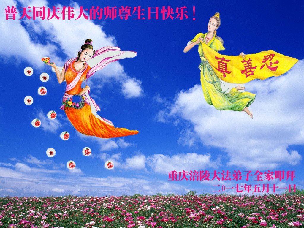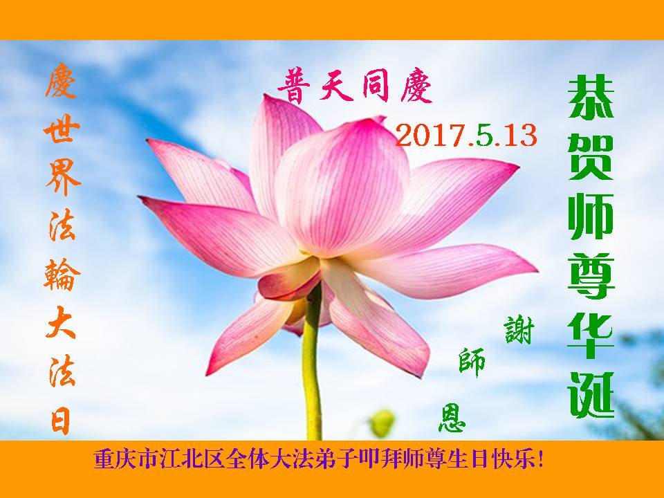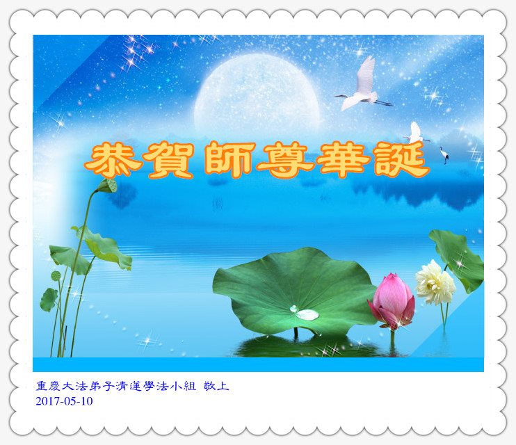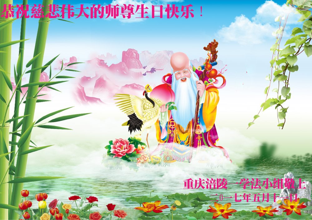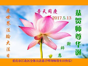 【明慧网二零一七年五月十三日】 重庆涪陵大法弟子恭祝慈悲伟大的师尊生日快乐!