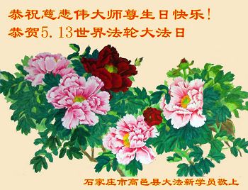 回顾二十年的修炼历程,师尊为我们承受太多太多,救度之恩无以言表,唯有在这正法的最后时刻,牢记师尊教诲,修炼如初,勇猛精進,多学法,多救众生,遇事向内找,修好自己,珍惜万古机缘,兑现史前誓约,圆满随师还! 河北省石家庄市高邑县大法新学员恭贺世界法轮大法日!恭祝慈悲伟大的师尊生日快乐!