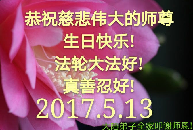 希望自己在最后时刻把该做的做好,不辱使命,不辜负伟大师父的慈悲苦度! 教育系统大法弟子恭祝师尊生日快乐!