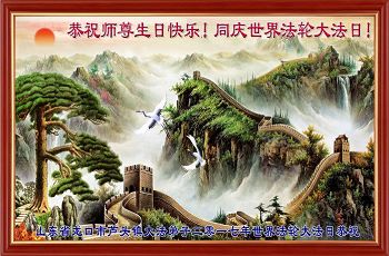 我们一定做好师父交给的三件事,勇猛精進,修好自己,多救众生,迎接师父早日回大陆。 山东烟台大法弟子恭祝师尊生日快乐!庆贺世界法轮大法日!
