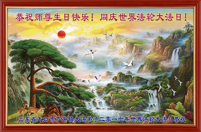 山东省龙口市芦头镇大法弟子 二零一七年世界法轮大法日恭祝 辽宁省丹东市大法弟子恭祝伟大的师尊生日快乐!同贺法轮大法日!