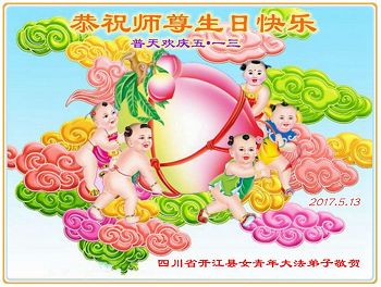 恭祝师尊生日快乐!普天同庆世界法轮大法日! 辽宁抚顺三名大法弟子敬上 二零一七年五月 四川省达州市一大法学员恭祝师尊生日快乐!