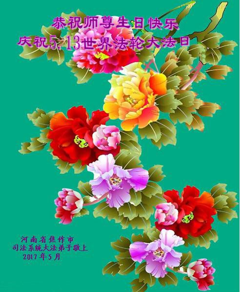 河南省焦作市司法系统大法弟子恭祝师尊生日快乐!庆祝世界法轮大法日!