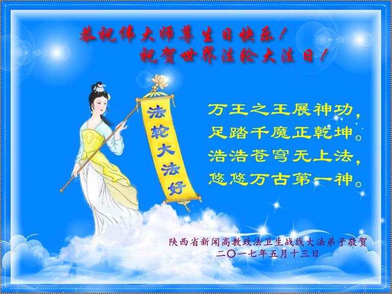 陕西省新闻高教政法卫生战线大法弟子恭祝伟大师尊生日快乐!欢庆世界法轮大法日!