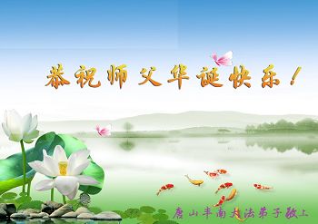 河北廊坊西小区一夫妻大法弟子恭贺世界法轮大法日!恭祝师尊生日快乐! 弟子感恩师尊慈悲救度,盼望早日见到师尊! 河北唐山丰南区大法弟子恭祝慈悲伟大的师父生日快乐!