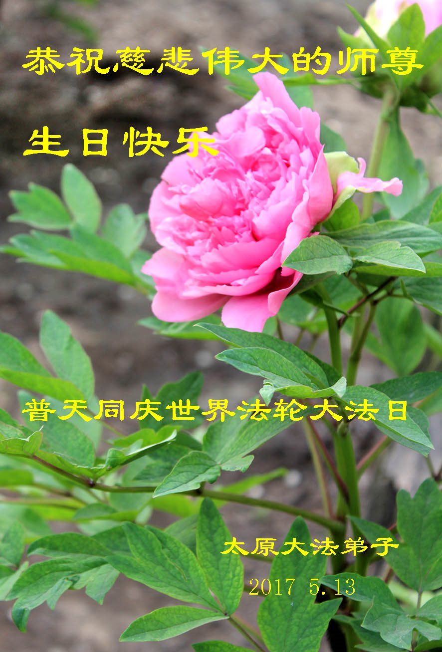 山西省太原市晋源区全体大法弟子恭祝慈悲伟大的师尊生日快乐!普天同庆5.13世界法轮大法日!感恩师尊慈悲苦度! 弟子叩拜慈悲伟大的师尊 二零一七年五月十日 山西省吕梁市交城县大法弟子恭祝师尊生日快乐!暨法轮大法洪传世界二十五周年!