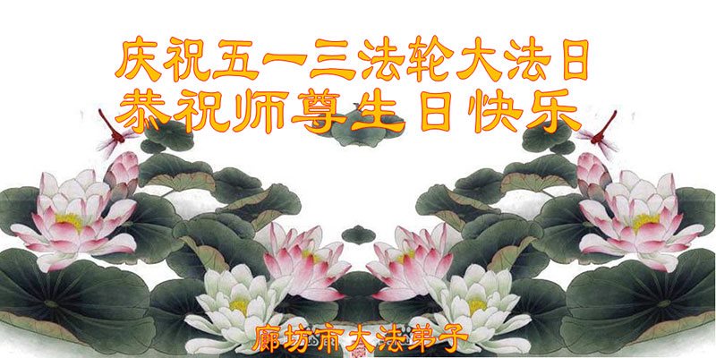 河北省廊坊市大法弟子祝贺五一三世界法轮大法日!恭祝师尊生日快乐!