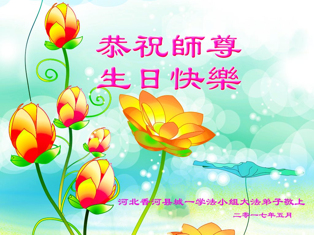 河北省廊坊市香河县城一学法小组大法弟子恭祝师尊生日快乐!