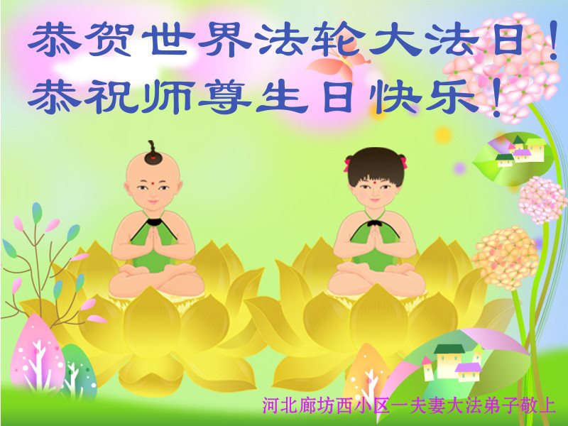 河北廊坊西小区一夫妻大法弟子恭贺世界法轮大法日!