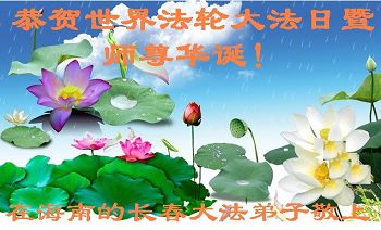 在海南的长春大法弟子恭贺世界法轮大法日暨师尊华诞!