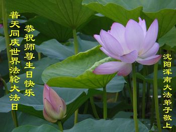 辽宁省沈阳一老年大法弟子恭贺法轮大法日恭祝师尊生日快乐!