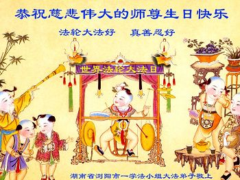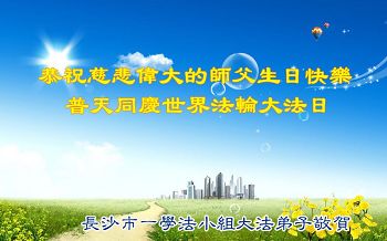 恭贺法轮大法日和法轮大法洪传世界二十五周年! 湖南省长沙市一学法小组大法弟子恭祝慈悲伟大的师父生日快乐!同庆世界法轮大法日!