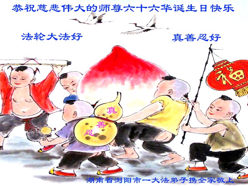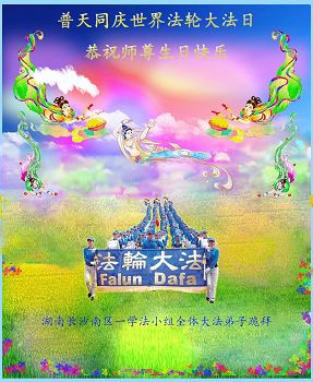湖南省长沙市大法弟子恭祝慈悲伟大的师尊生日快乐!