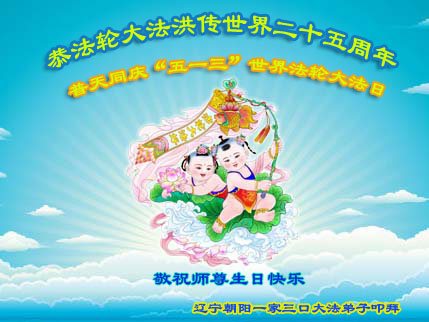 辽宁省朝阳市北票市一家大法弟子恭贺法轮大法日暨师尊华诞!