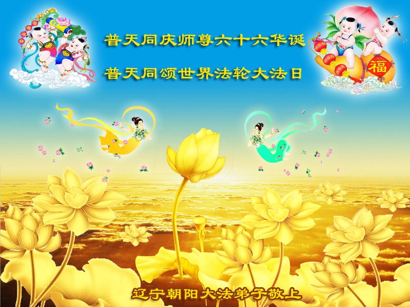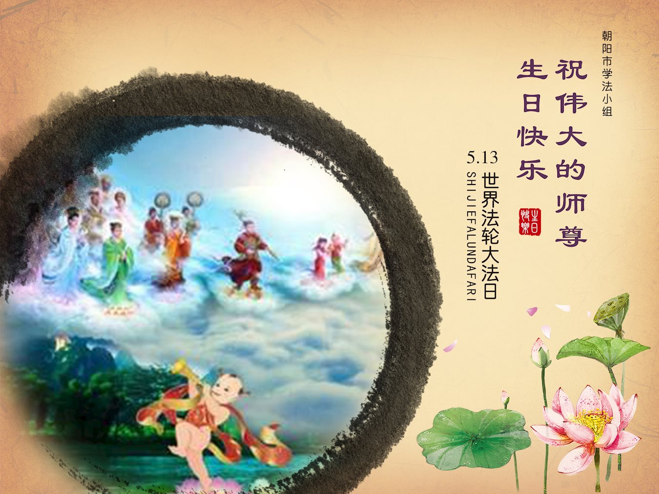 恭祝慈悲伟大的师父生日快乐!普天同庆5.13法轮大法日! 北票一家大法弟子敬上 辽宁朝阳市学法小组祝师尊生日快乐!