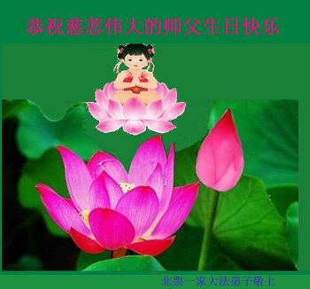 谢谢师尊的慈悲救度!弟子一定谨记师恩! 武汉大法弟子全家叩首敬拜。 武汉大法弟子恭祝师尊生日快乐!