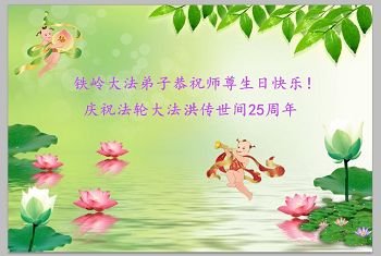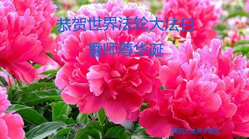 庆贺第十八届世界法轮大法日!恭祝法轮大法洪传二十五周年! 感恩师尊,道不尽的感恩,汇成一句话,祝师尊生日快乐!弟子叩拜师恩! 全体堂二里大法弟子恭祝慈悲伟大的恩师生日快乐!