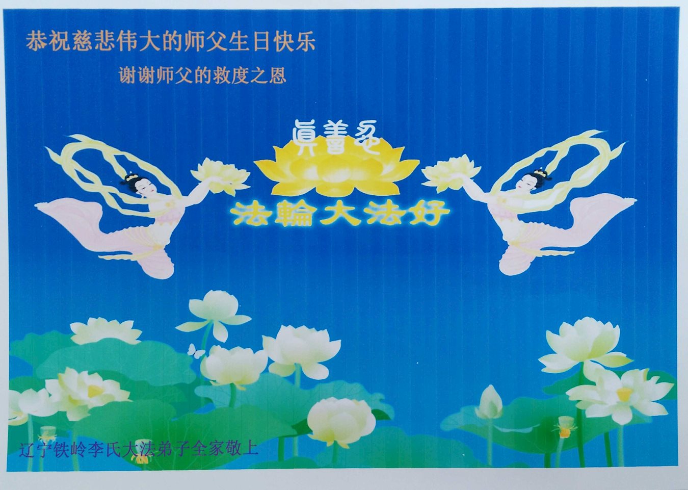 辽宁铁岭大法弟子全家恭祝师尊生日快乐!