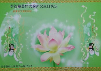 师尊好! 五月十三日是全世界大法弟子普天同庆的日子,我祝师尊生日快乐!在今后的修炼道路上我要时刻以法为师,做好三件事来回报师恩。 再次祝师尊生日快乐! 北京大法弟子 二零一七年五月十一日 |
