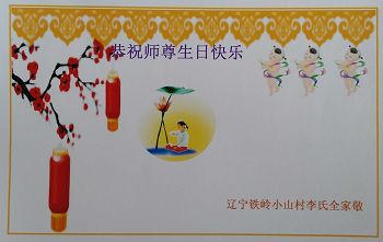 祝师父生日快乐!恭贺法轮大法日,祝师父福如东海,弟子要努力做好三件事,要师父多一些安慰少一些操劳。 大陆大法弟子全家恭祝慈悲伟大的师尊生日快乐!