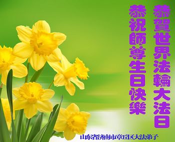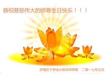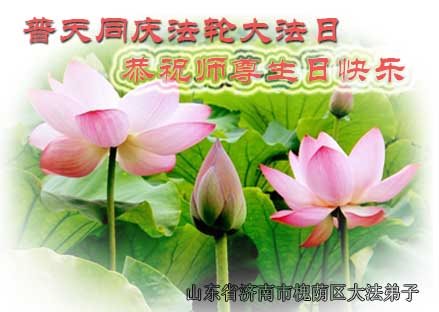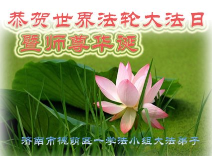 山东济南一大法学习小组恭贺世界法轮大法日,恭祝师父生日快乐!