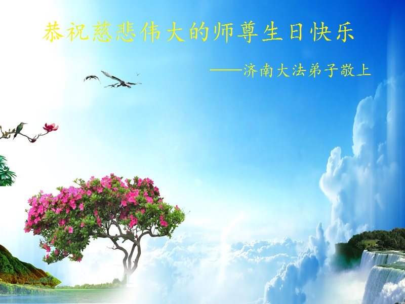 山东省济南大法弟子恭祝慈悲伟大的师尊生日快乐!