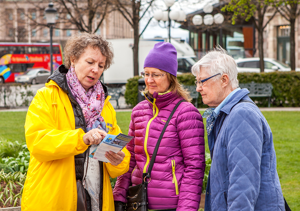 伊万娜(Yvonne)是一位经济师,工作之余,她经常尝试着各种快乐的事情,寻找新鲜的东西来丰富生活。一九九八年十月她开始尝试修炼法轮大法,奇迹发生了,她的身体充满能量、精力充沛,心态变得平静祥和,大法将她的心熔炼得宽广而明亮。 得法后她多次去过中国,与大陆同修的接触,那感觉就像自己的亲人一样,所以当大陆同修被迫害时,她发自内心想做点什么帮助这些真正的好人。在二零零一年十一月二十日,她与其他三十五名西人法轮功学员在天安门广场打出了写有“真善忍”的横幅,为法轮功和平请愿,他们都遭受到警察的野蛮殴打和非法关押。 回到瑞典后,她用自己在中国受到迫害的亲身经历,向瑞典媒体和民众揭露中共迫害法轮功的事实真相。伊万娜期待着再次回到中国,早日见到她的中国同修。 谈起李洪志师父,伊万娜说:“师父在我心中永远是至高无上的,感谢师父为我安排的一切。” 中西方企业家修炼感悟 来自林雪平市的西人学员伊利亚斯(Ilias)是一家饭店老板,也是一位成功的企业家,他早早就来到了活动现场准备音像设备。 伊利亚斯是一九九八年秋季经过朋友的介绍开始修炼大法的。在这之前他已经有十三年的吸毒史了,他早已厌倦了那种生活方式。他曾祈求宇宙能够给他一个真实的生活,他情愿强迫自己戒掉一些东西并走过一个非常艰难的时期。大约两个星期后,一个好朋友来看望他,给他演示了功法,他得到一本《转法轮》。他说:“我已经寻找了很久、经历了许多,我明白了,这就是我一直在寻找的。现在对我来说那就是要无愧于大法,无愧于师父的艰辛救度。” 他最想要做的事情就是让更多的人都能了解法轮功真相。是法轮大法给了他新生,他心中充满了对师父的感恩。 另一位企业家迈克尔(Michael),是一位得法三年的新学员,他说:“做生意的、特别是中国人满脑子想的都是怎么赚钱,我也如此,以前我最看重的就是每年收入递增的百分比,增长的幅度那是越多越好,给人的压力之大,我根本不会考虑的。现在我修炼了,好象很多事情都看开了,看问题的角度、追求的东西重心也都不一样的。心态变得祥和了,自己的精神状况也越来越好,很多人都说我这个老板跟原来不一样了。” 在四个多小时的活动中,西人学员克里斯蒂娜(Kristina)、琵丽尤(Pirjo)、温纳(Werner) 、托比亚斯(Tobias)、索菲亚( Sofia)几位西人法轮功学员先后发言,他们用英语、瑞典语向过往民众介绍什么是法轮功(法轮大法)、大法在世界弘传的盛况同时揭露中共如何迫害法轮功,以及活摘法轮功学员器官罪行。很多人驻足观看真相展板,主动上前了解真相。了解了真相后的人们都对法轮功很感兴趣,有的当场就要学功。