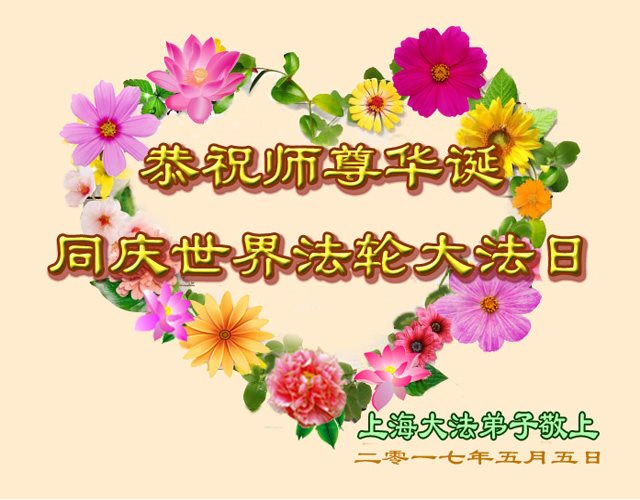 祝师尊二零一七年生日快乐! 上海大法弟子 上海黄浦区大法弟子恭祝慈悲伟大师尊生日快乐!普天同庆世界法轮大法日!