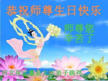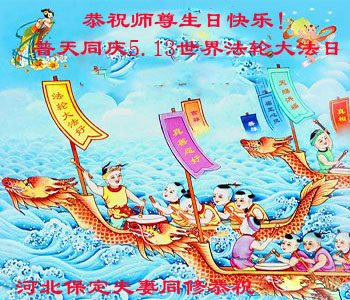河北省保定大法弟子恭祝慈悲伟大的师尊生日快乐!庆祝世界法轮大法日!