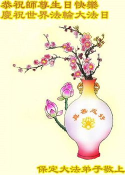恭贺法轮大法日! 恭祝慈悲伟大的师尊生日快乐! 弟子携女儿叩拜师尊!谢谢师尊慈悲苦度! 涿州市一大法弟子携女儿敬上 河北省保定西郊一学法小组大法弟子祝师父生日快乐!